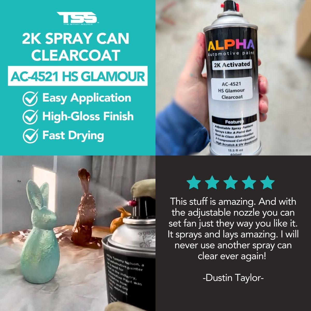 Our bestseller AC-4521HS Glamour Clear (45% solids, 2:1 mix, no reducer needed) is now in spray cans.