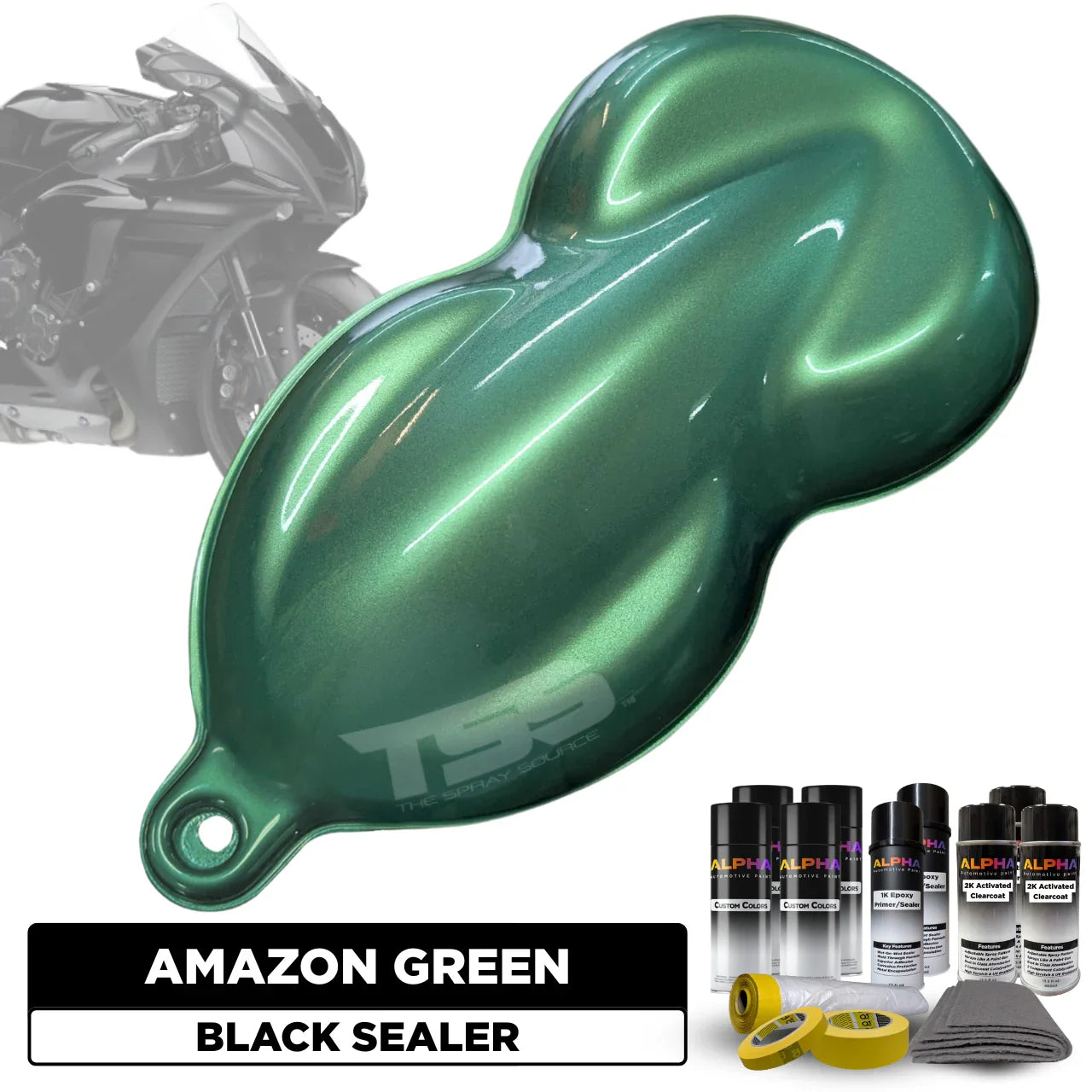 This Motorcycle Paint Kit includes everything you need to paint your motorcycle Amazon Green. From the primer , basecoat, and topcoats to the optional prep and masking materials – each item has been specially put together for you in one all-inclusive bundle. You simply choose the desired color, project type, finish (Matte, Satin or Gloss), and optional add-ons. Then we handle the rest. Doesn’t get easier than this!