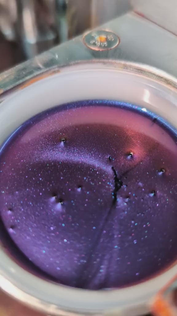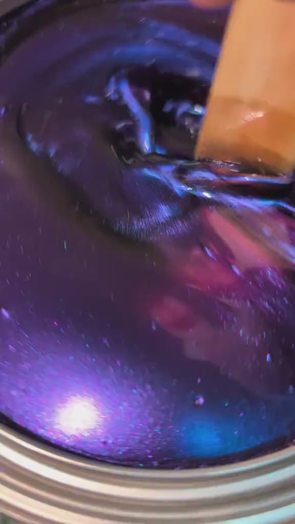 is a strong color changing pearl pigment that has purple/blue/pink/orange/gold/green tones. This color is great for full coverage color change applications (over black) or as effect over other colors like red green, or blue.