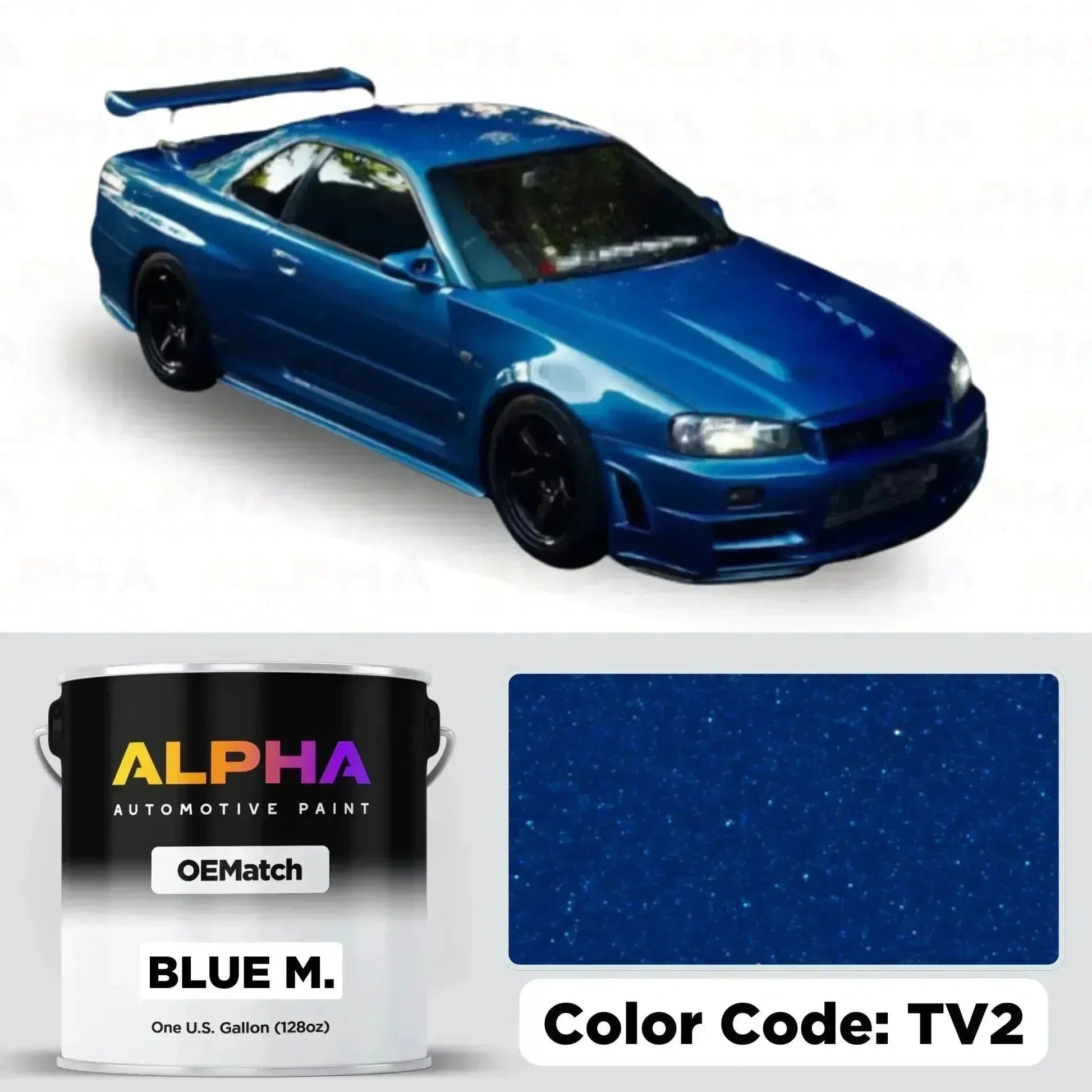Elevate your Nissan with Nissan Bayside Blue Metallic TV2 OEM Matching Automotive Paint. This iconic metallic blue color, famous for its appearance on the legendary R34 Skyline GT-R, offers a precise factory color match for restorations or custom projects. Whether you're restoring a classic Nissan GT-R or adding a striking, high-gloss finish to your build, this paint delivers a deep, high-gloss metallic finish that enhances the sleek, aggressive lines of your vehicle.