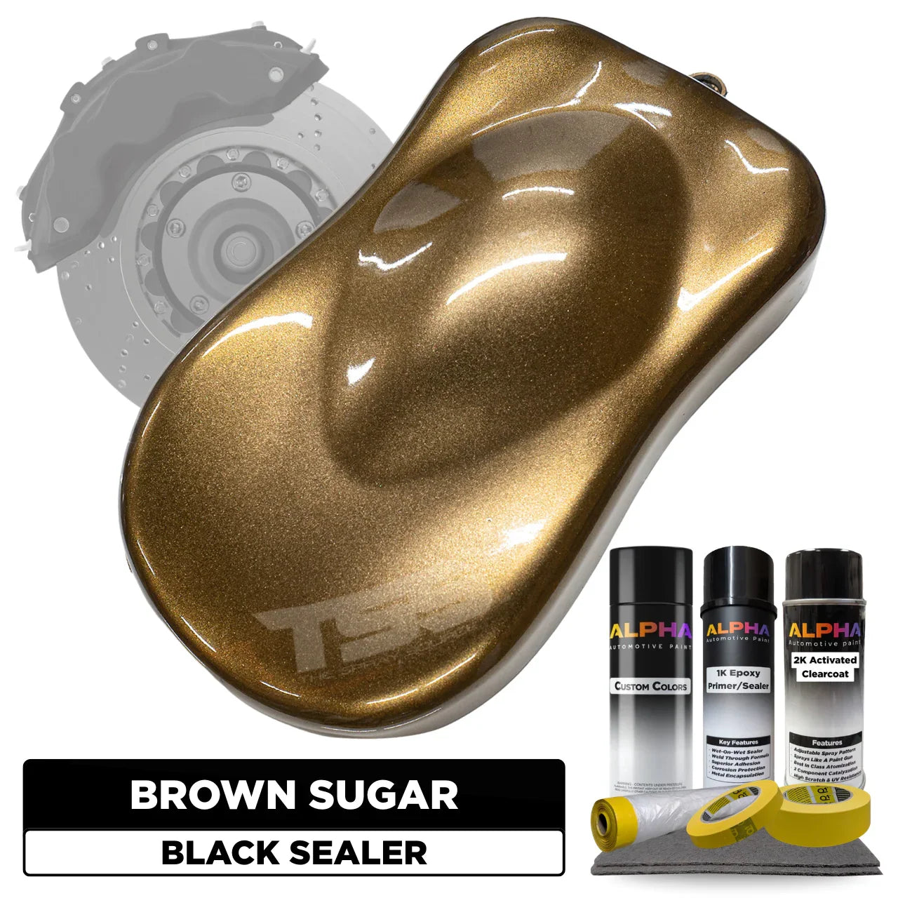 This Brake Caliper Paint Kit includes everything you need to paint your brake calipers Brown Sugar. From the primer, basecoat, and topcoats to the optional prep and masking materials – each item has been specially put together for you in one all-inclusive bundle. You simply choose the desired color, project type, finish (Matte, Satin or Gloss), and optional add-ons. Then we handle the rest. Doesn’t get easier than this!