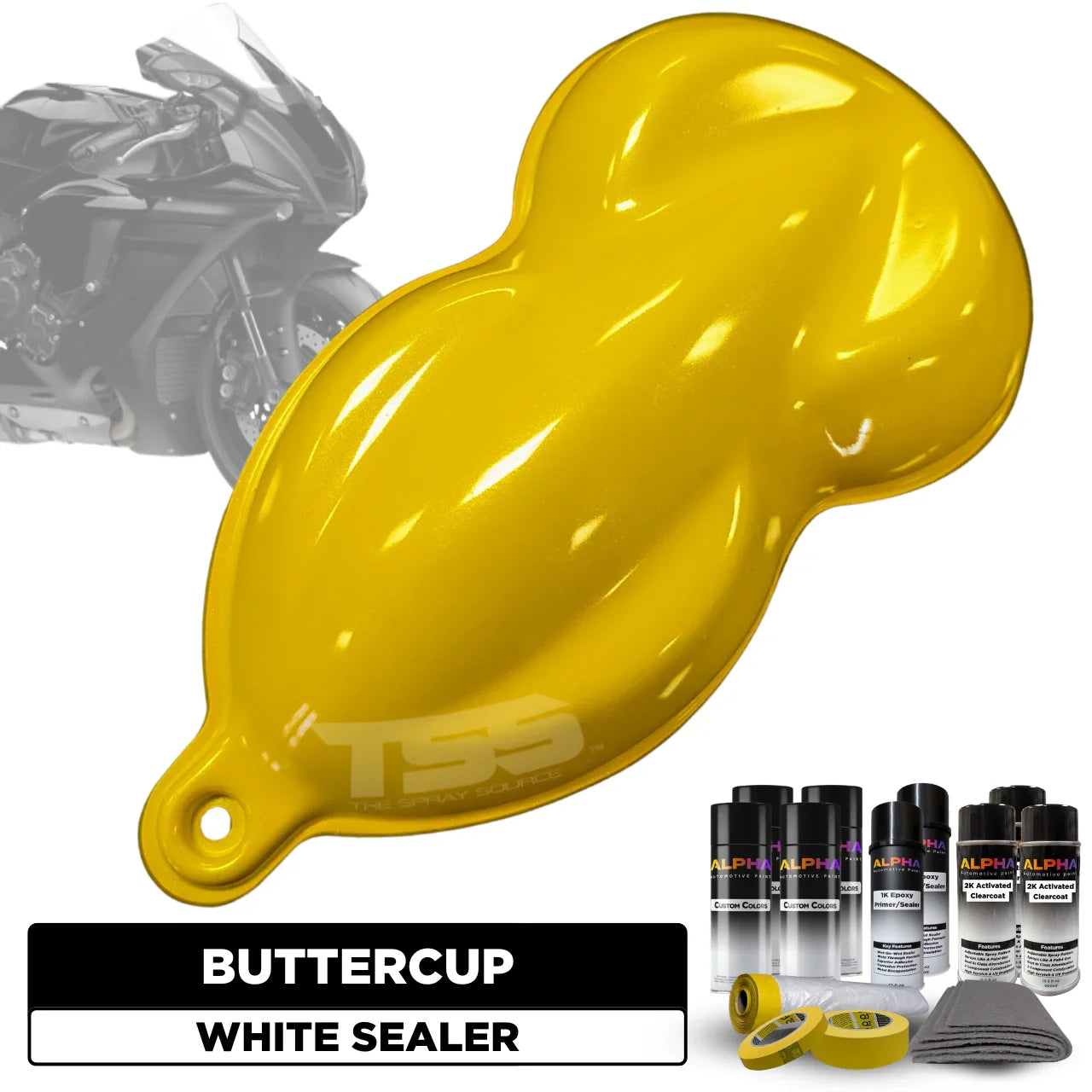 This Motorcycle Paint Kit includes everything you need to paint your motorcycle Buttercup. From the primer , basecoat, and topcoats to the optional prep and masking materials – each item has been specially put together for you in one all-inclusive bundle. You simply choose the desired color, project type, finish (Matte, Satin or Gloss), and optional add-ons. Then we handle the rest. Doesn’t get easier than this!