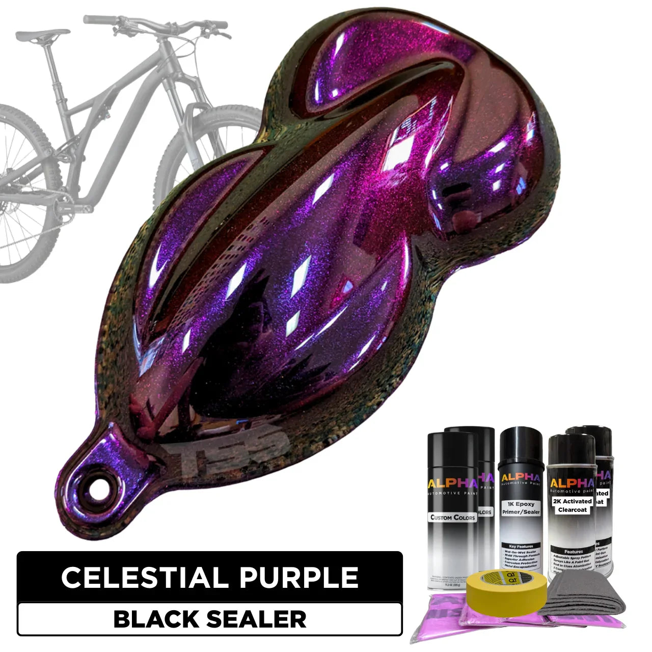 This Bike Paint Kit includes everything you need to paint your bike Celestial Purple . From the primer , basecoat, and topcoats to the optional prep and masking materials – each item has been specially put together for you in one all-inclusive bundle. You simply choose the desired color, finish (Matte, Satin or Gloss), and optional add-ons. Then we handle the rest. Doesn’t get easier than this!