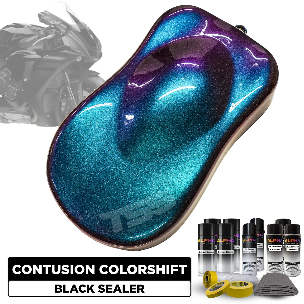 This Motorcycle Paint Kit includes everything you need to paint your motorcycle Contusion Colorshift. From the primer , basecoat, and topcoats to the optional prep and masking materials – each item has been specially put together for you in one all-inclusive bundle. You simply choose the desired color, project type, finish (Matte, Satin or Gloss), and optional add-ons. Then we handle the rest. Doesn’t get easier than this!