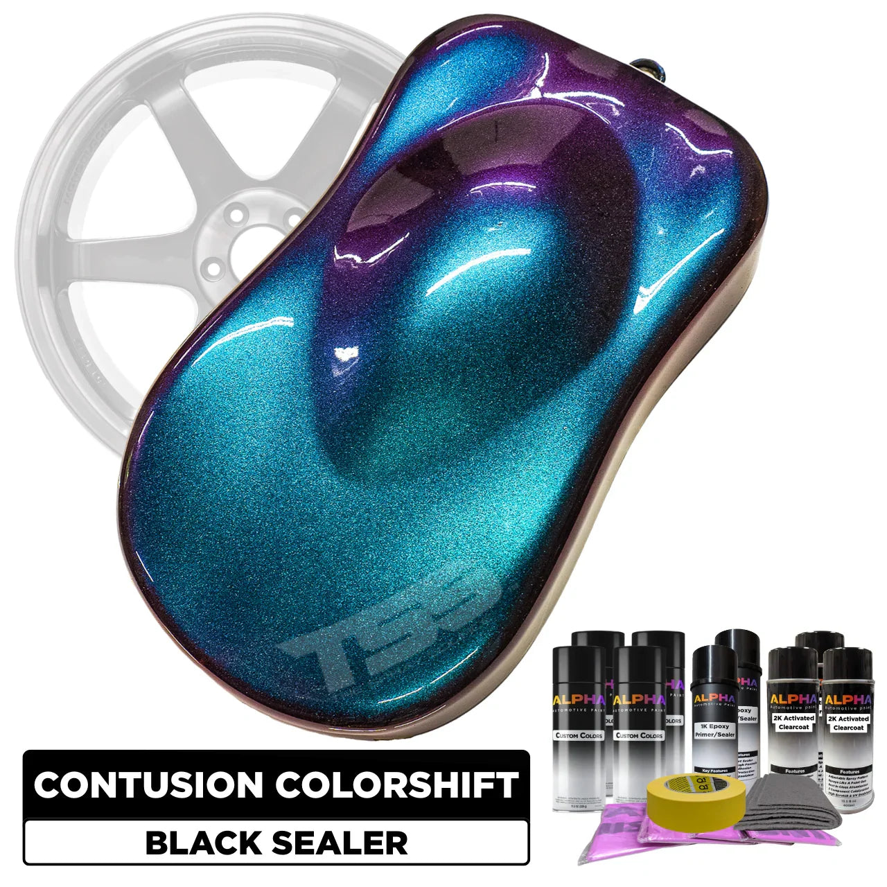 This Wheel Paint Kit includes everything you need to paint your wheels Contusion Colorshift . From the primer , basecoat, and topcoats to the optional prep and masking materials – each item has been specially put together for you in one all-inclusive bundle. You simply choose the desired color, project type, finish (Matte, Satin or Gloss), and optional add-ons. Then we handle the rest. Doesn’t get easier than this!