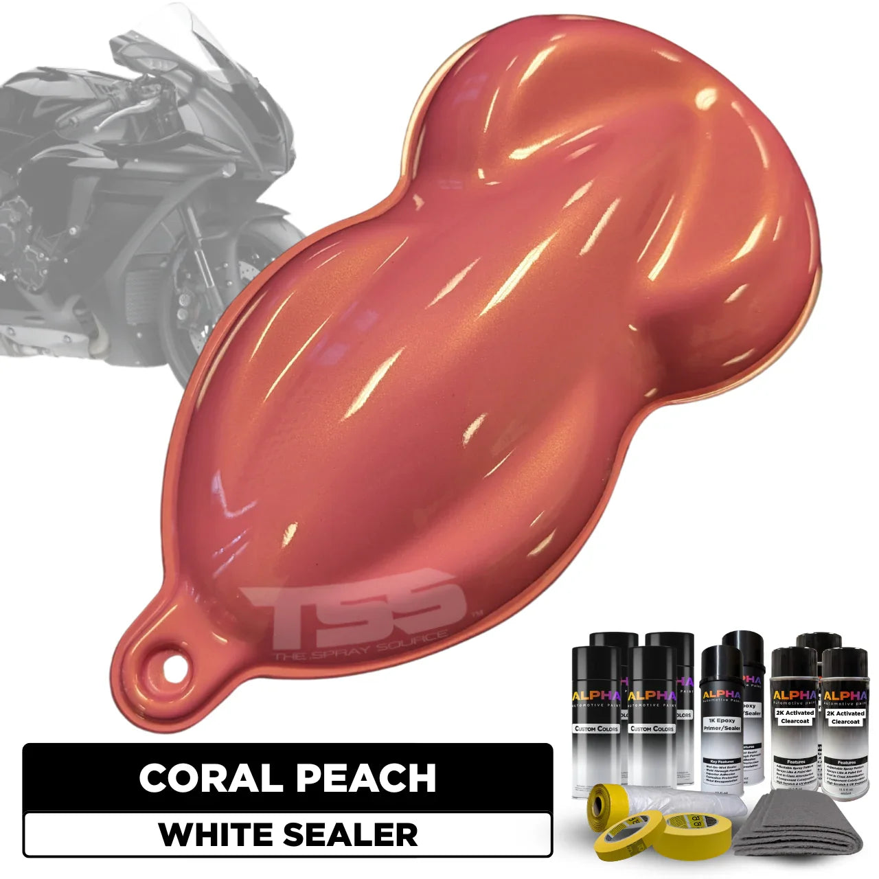 This Motorcycle Paint Kit includes everything you need to paint your motorcycle Coral Peach. From the primer , basecoat, and topcoats to the optional prep and masking materials – each item has been specially put together for you in one all-inclusive bundle. You simply choose the desired color, project type, finish (Matte, Satin or Gloss), and optional add-ons. Then we handle the rest. Doesn’t get easier than this!