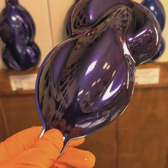About this color: is an epic Alpha Custom Color with the best aspects of candy and custom colors! This is a "Candy Pearl" basecoat BUT covers significantly better than the traditional candy pearl. This has 5x the amount of pearl which we formulated to give much better coverage without sacrificing the candy effect. This is a deep purple that has hues of black, purple, blue, and a slight gold.