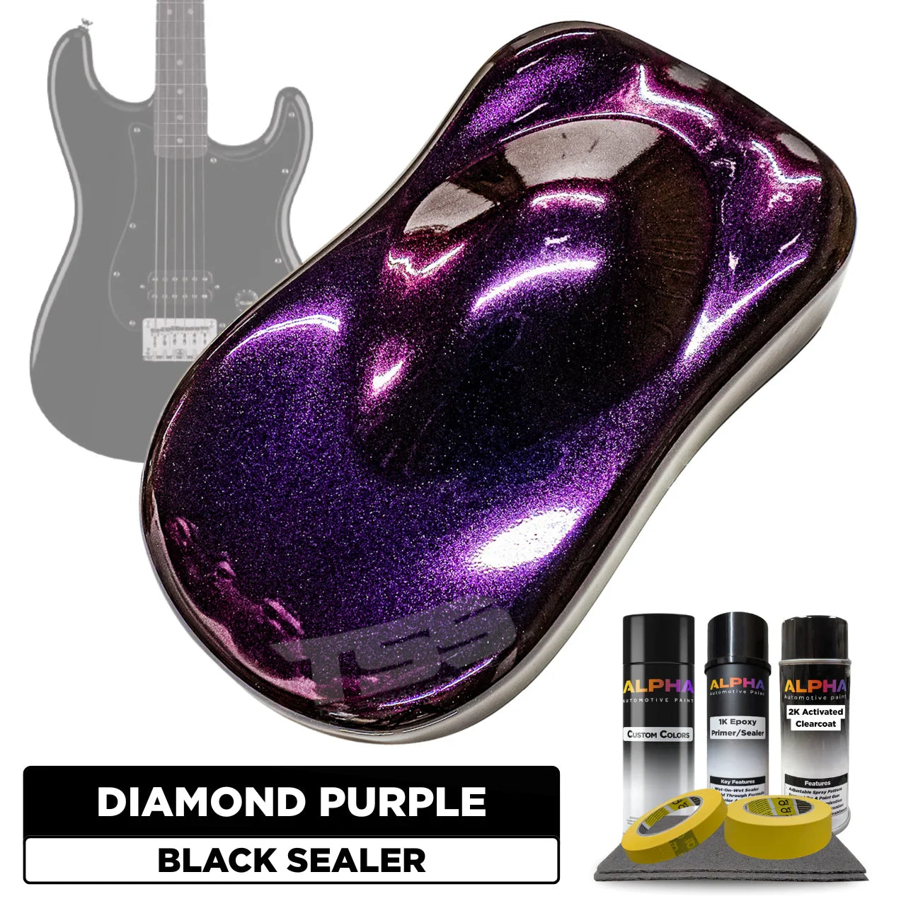 This Guitar Paint Kit includes everything you need to paint your custom guitar Diamond Purple. From the primer, basecoat, and topcoats to the optional prep and masking materials – each item has been specially put together for you in one all-inclusive bundle. You simply choose the desired color, project type, finish (Matte, Satin, or Gloss), and optional add-ons. Then we handle the rest. Doesn’t get easier than this!