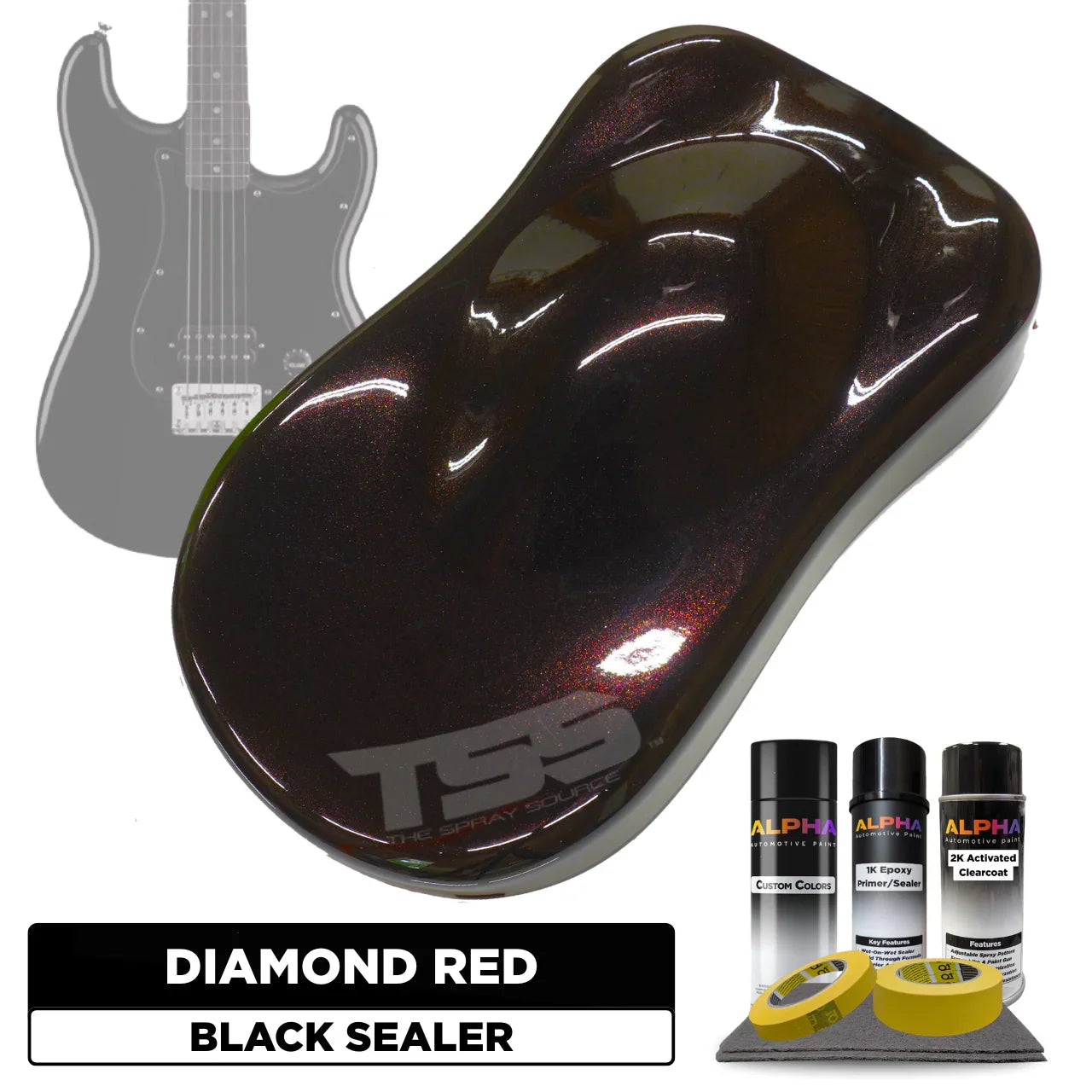 This Guitar Paint Kit includes everything you need to paint your custom guitar Diamond Red. From the primer, basecoat, and topcoats to the optional prep and masking materials – each item has been specially put together for you in one all-inclusive bundle. You simply choose the desired color, project type, finish (Matte, Satin, or Gloss), and optional add-ons. Then we handle the rest. Doesn’t get easier than this!