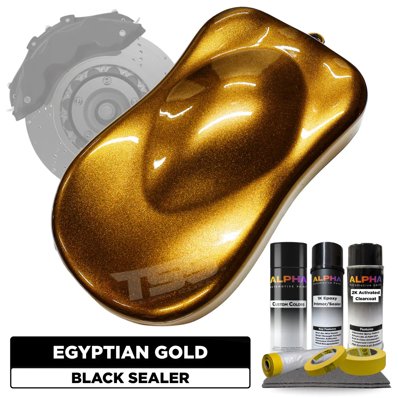 This Brake Caliper Paint Kit includes everything you need to paint your brake calipers Egyptian Gold. From the primer, basecoat, and topcoats to the optional prep and masking materials – each item has been specially put together for you in one all-inclusive bundle. You simply choose the desired color, project type, finish (Matte, Satin or Gloss), and optional add-ons. Then we handle the rest. Doesn’t get easier than this!