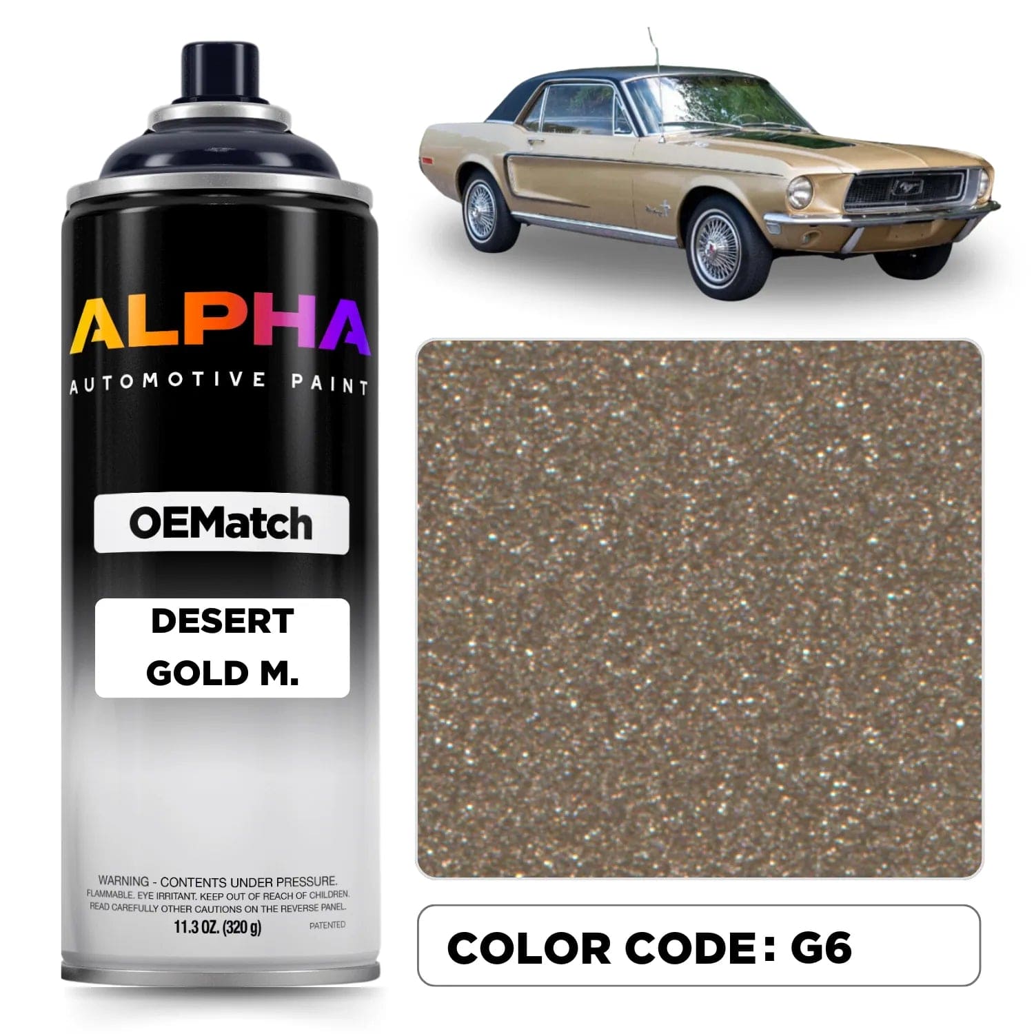 Bring your Ford back to life with Ford Desert Gold Metallic G6 OEM Matching Automotive Paint. This elegant metallic gold color, featured on iconic Ford models like the Mustang and Torino, offers a precise factory color match for restoration or custom projects. Whether you're restoring a classic muscle car or adding a luxurious, high-gloss finish to a modern build, this paint provides a smooth, high-gloss metallic finish that enhances your vehicle’s bold lines and timeless appeal.