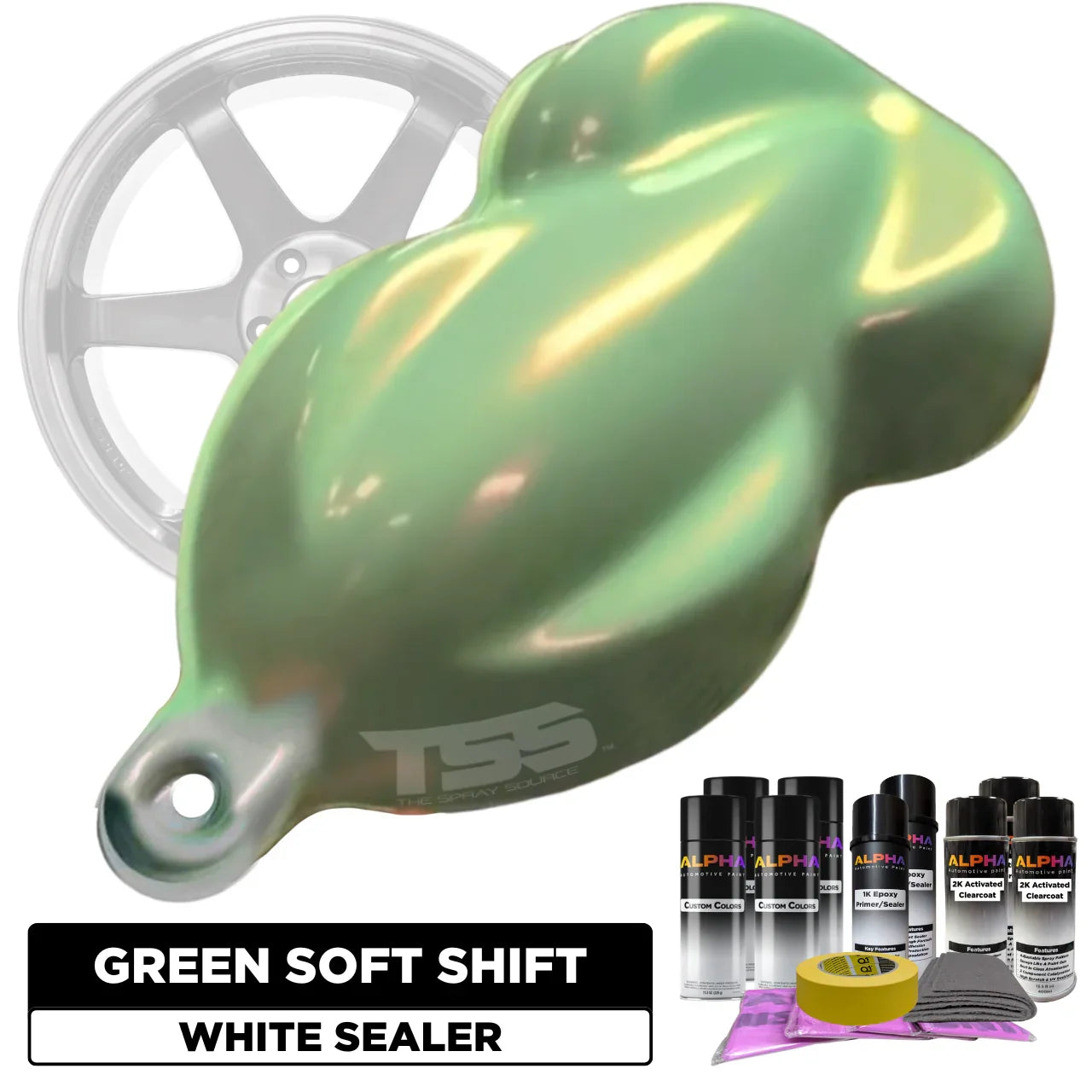 This Wheel Paint Kit includes everything you need to paint your wheels Green Soft Shift. From the primer , basecoat, and topcoats to the optional prep and masking materials – each item has been specially put together for you in one all-inclusive bundle. You simply choose the desired color, project type, finish (Matte, Satin or Gloss), and optional add-ons. Then we handle the rest. Doesn’t get easier than this!