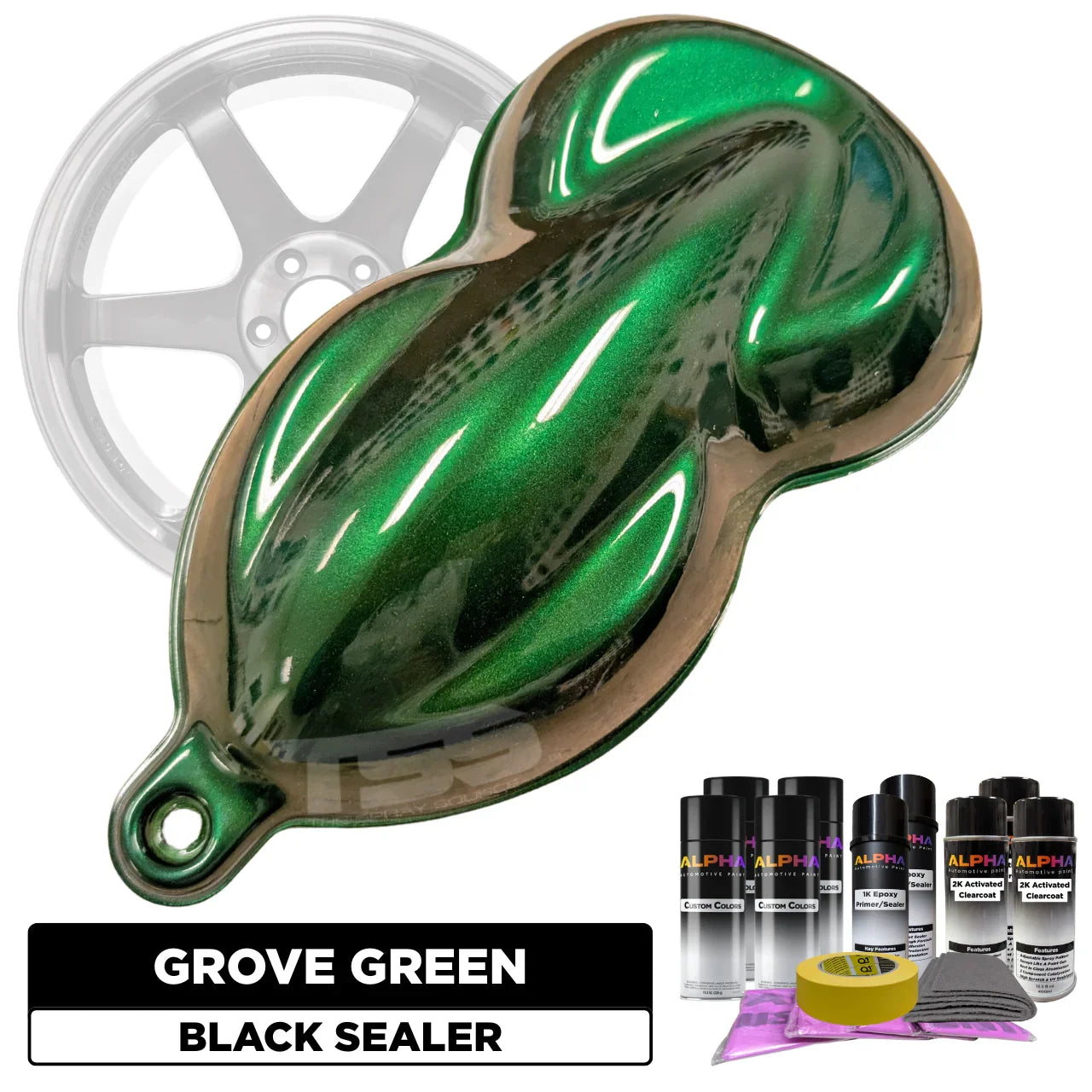 This Wheel Paint Kit includes everything you need to paint your wheels Grove Green. From the primer , basecoat, and topcoats to the optional prep and masking materials – each item has been specially put together for you in one all-inclusive bundle. You simply choose the desired color, project type, finish (Matte, Satin or Gloss), and optional add-ons. Then we handle the rest. Doesn’t get easier than this!