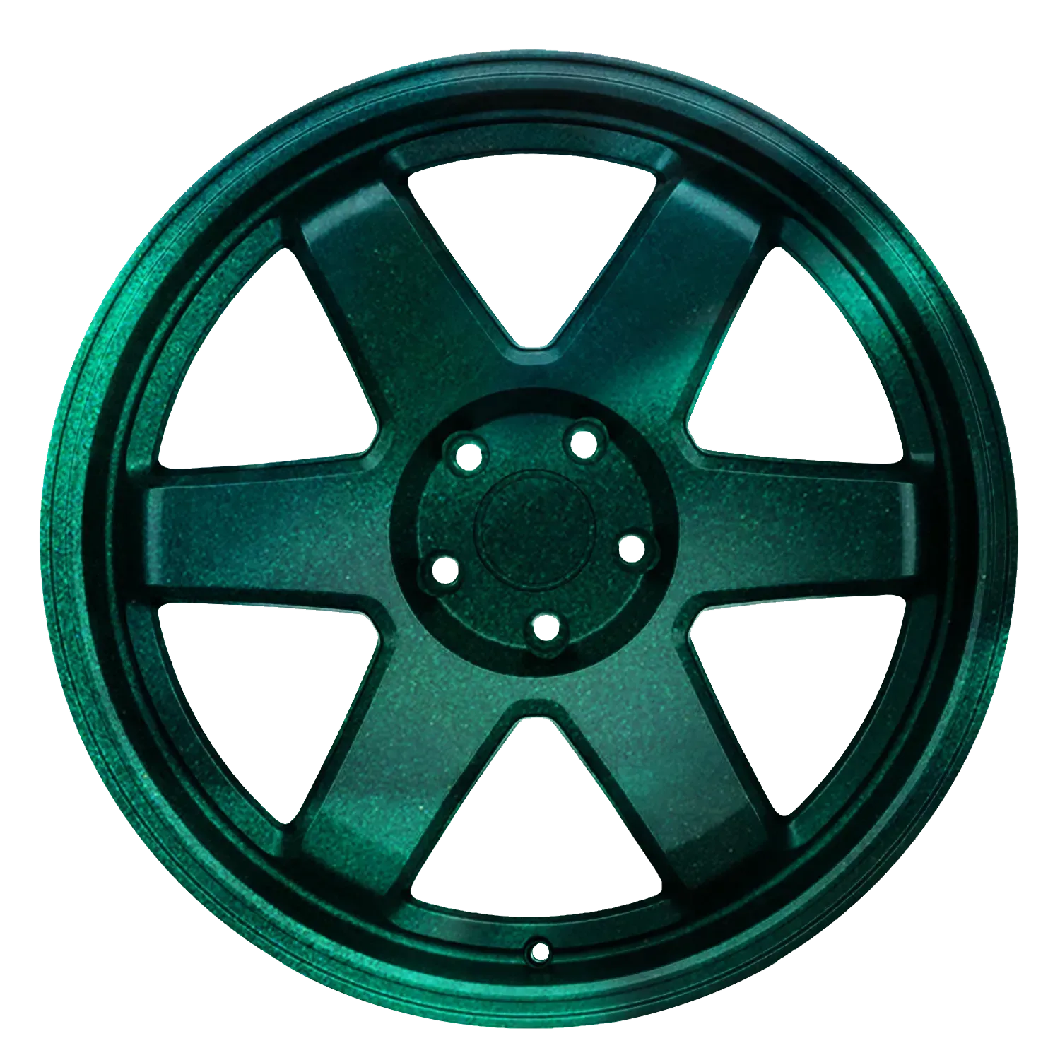 - Shake basecoat cans according to the label. Then spray 2-4 basecoats on the wheels (wait 10 mins or until flashed in between coats) until the desired effect & color is achieved.