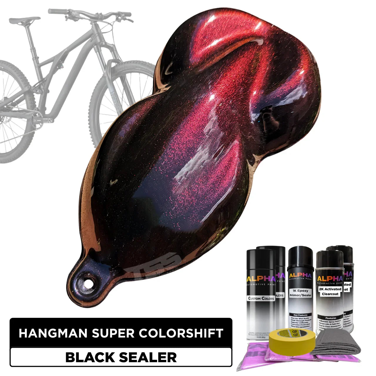 This Bike Paint Kit includes everything you need to paint your bike Hangman Super Colorshift . From the primer , basecoat, and topcoats to the optional prep and masking materials – each item has been specially put together for you in one all-inclusive bundle. You simply choose the desired color, finish (Matte, Satin or Gloss), and optional add-ons. Then we handle the rest. Doesn’t get easier than this!