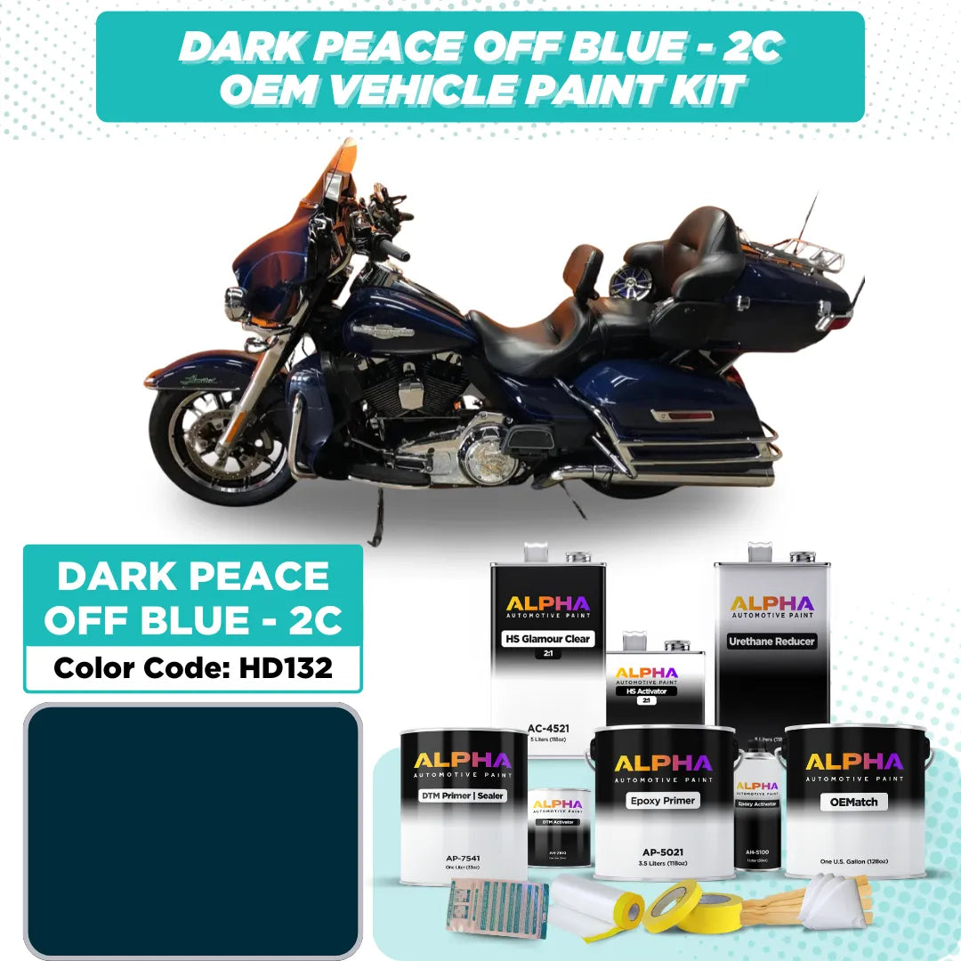 Enhance your Harley-Davidson's distinctive appearance with our premium Dark Peace Officer Blue 2C HD132 paint. This high-quality formulation is meticulously crafted to match the original factory color used on Harley-Davidson motorcycles between 2006 and 2009. The deep, solid finish delivers a seamless blend, effectively covering scratches, chips, or blemishes, and restoring your bike's authentic, bold look. Whether you're refreshing an older model or performing touch-ups to maintain your ride's pristine condition, our Dark Peace Officer Blue 2C HD132 paint offers a durable, fade-resistant finish that stands the test of time. Ideal for both professionals and DIY enthusiasts, this paint combines ease of application with unmatched color accuracy, ensuring your Harley-Davidson looks as striking as the day it left the factory.