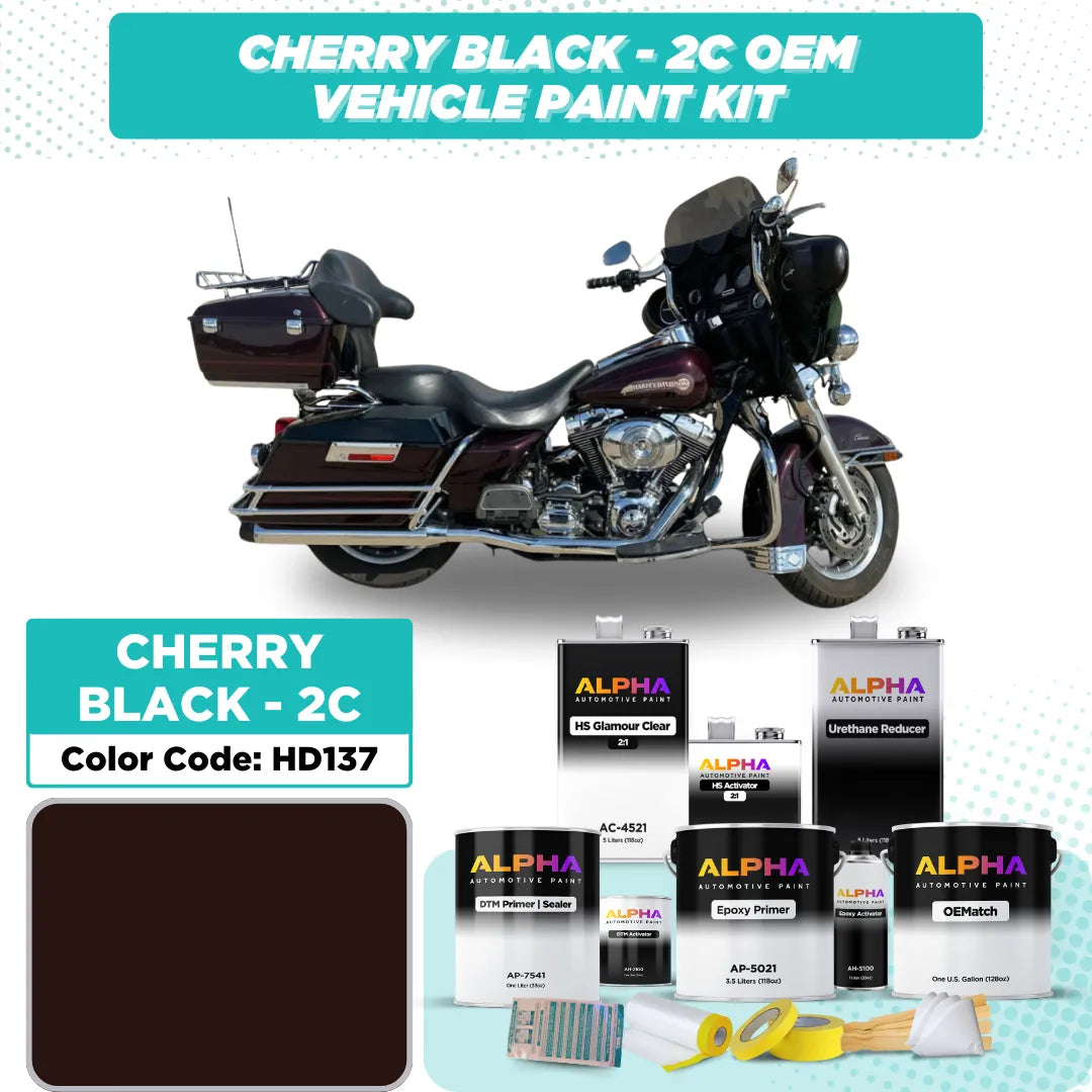 Restore or customize your Harley-Davidson with Harley-Davidson Cherry Black 2C HD137 OEM Matching Automotive Paint, delivering a factory-quality finish that embodies power, tradition, and road-ready style.