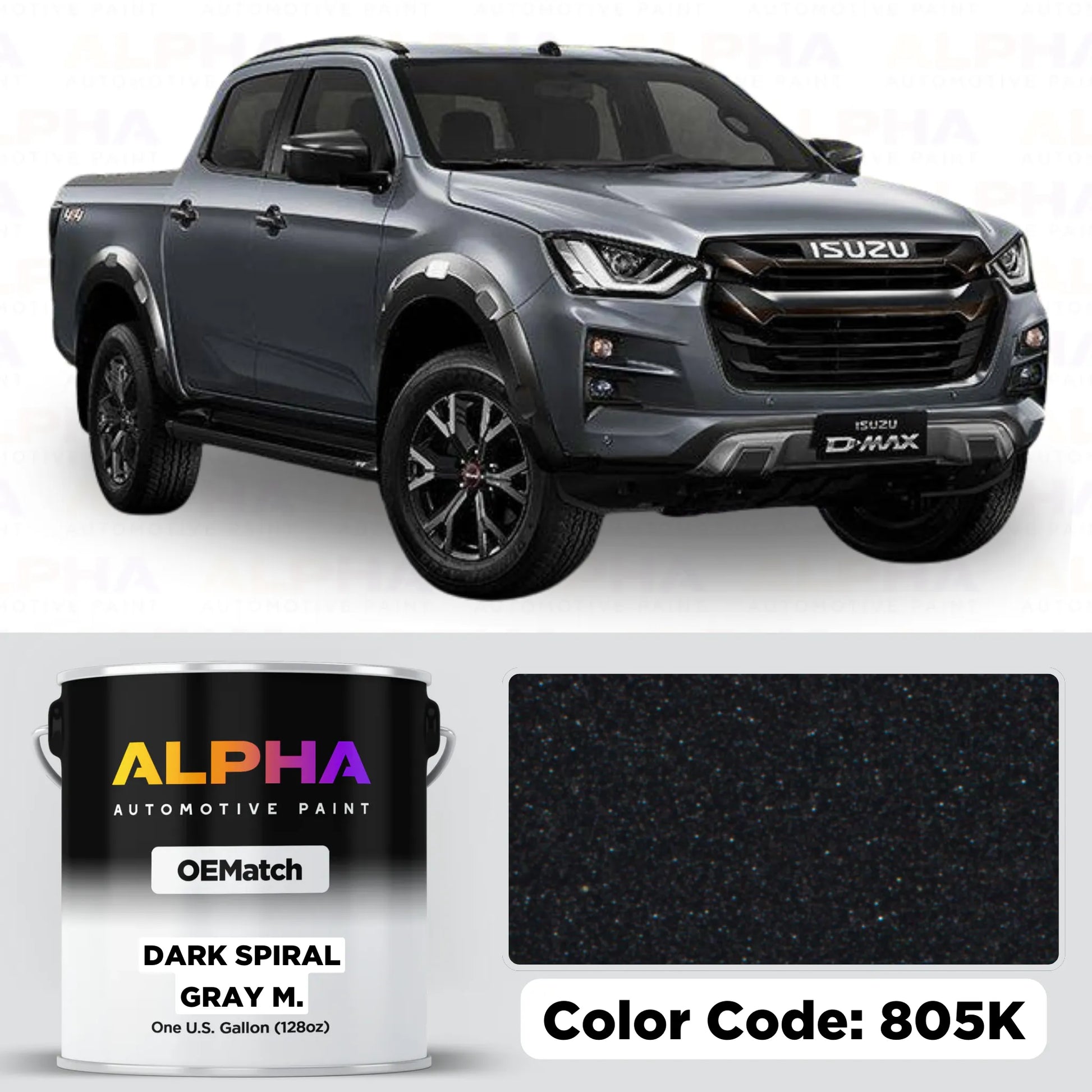 Restore or customize your Isuzu with Isuzu Dark Spiral Gray Metallic 805K / 62-805K OEM Matching Automotive Paint, delivering a factory-quality finish that embodies sophistication, durability, and style.