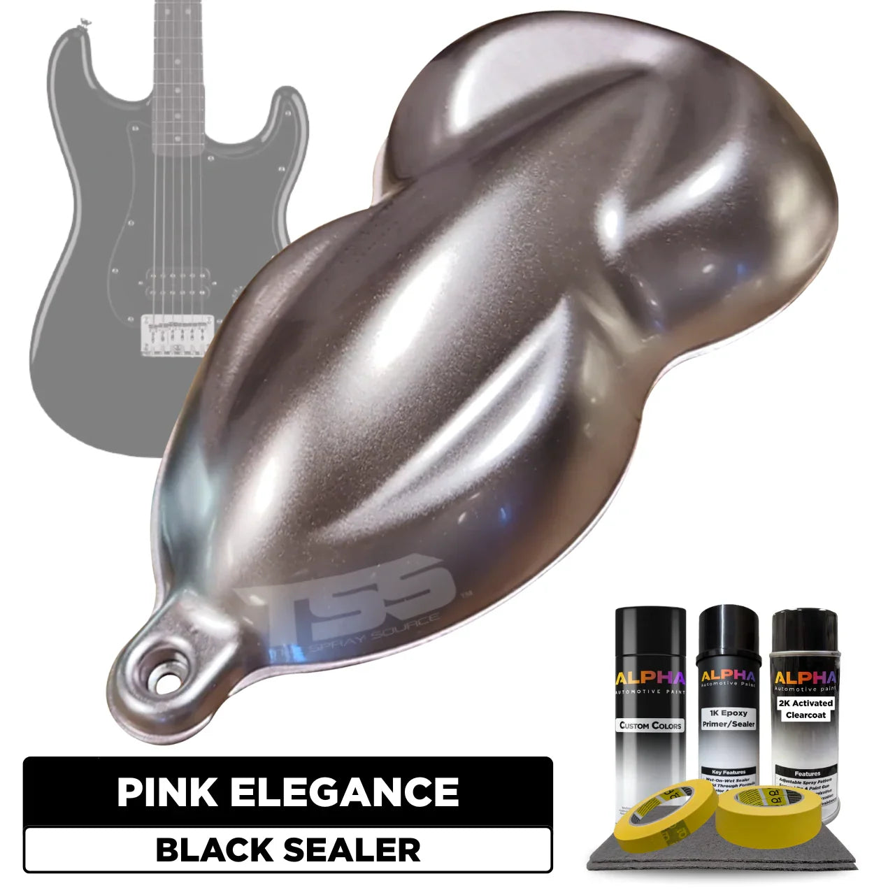 This Guitar Paint Kit includes everything you need to paint your custom guitar Pink Elegance. From the primer, basecoat, and topcoats to the optional prep and masking materials – each item has been specially put together for you in one all-inclusive bundle. You simply choose the desired color, project type, finish (Matte, Satin, or Gloss), and optional add-ons. Then we handle the rest. Doesn’t get easier than this!