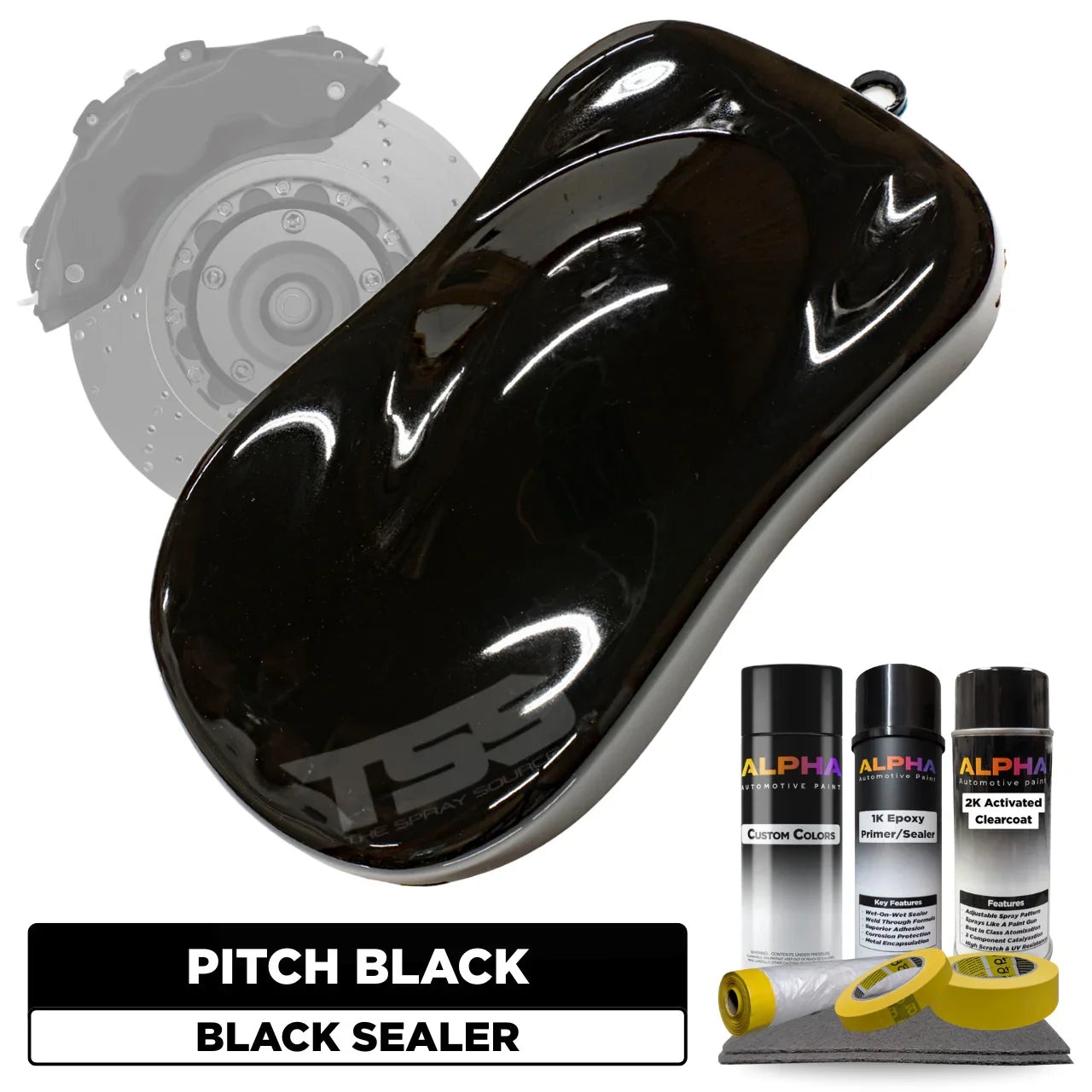 This Brake Caliper Paint Kit includes everything you need to paint your brake calipers Pitch Black. From the primer, basecoat, and topcoats to the optional prep and masking materials – each item has been specially put together for you in one all-inclusive bundle. You simply choose the desired color, project type, finish (Matte, Satin or Gloss), and optional add-ons. Then we handle the rest. Doesn’t get easier than this!