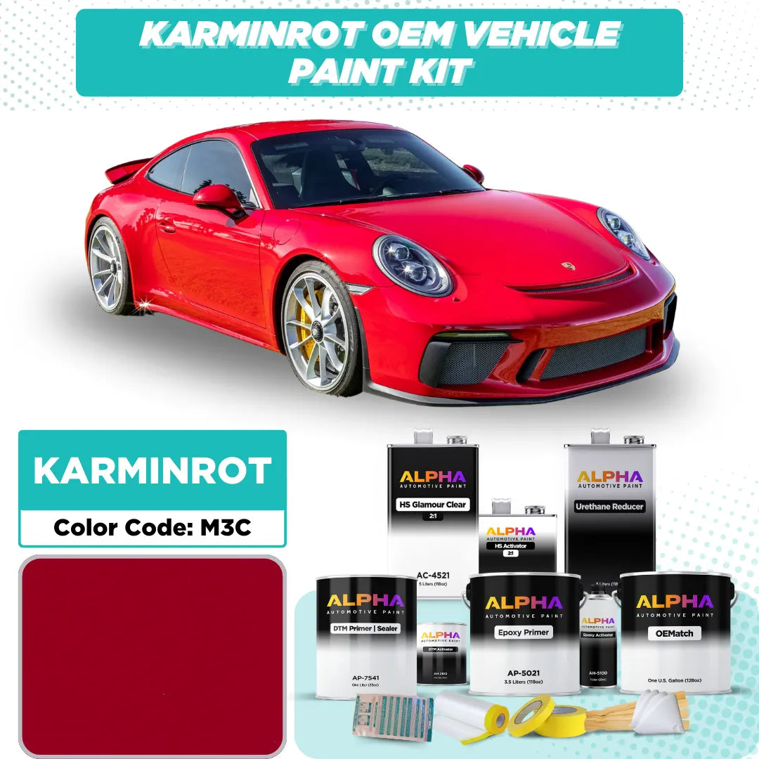 Elevate your Porsche's aesthetic with Porsche Carmine Red M3C OEM Matching Automotive Paint. This striking solid red, featured on models like the Porsche 911 and Macan since 2016, offers an exact factory color match for restorations or custom projects. Whether you're restoring a modern Porsche or adding a bold, high-gloss finish to your build, this paint delivers a smooth, high-gloss solid finish that accentuates the dynamic lines of your vehicle.
