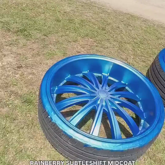 is a subtle color changing pearl pigment that has purple/green/blue tones. This color is great for full coverage color change applications (over blue) or as effect over other colors like purple, or green. This pigment is for liquid wrap, airbrushing, or bedliners only.