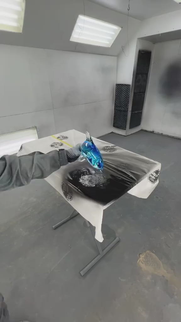 - Spray 2-4 wet coats or clearcoat with 10 mins or until fingerprinting (check masking) in between coats