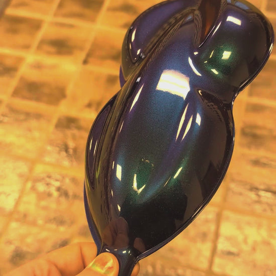 This color shows hues of blues, green, teals, purples, and red. This color is in the same family as the OEM 2000's Ford Mystic Chrome but with MORE colorshift and candy effects.