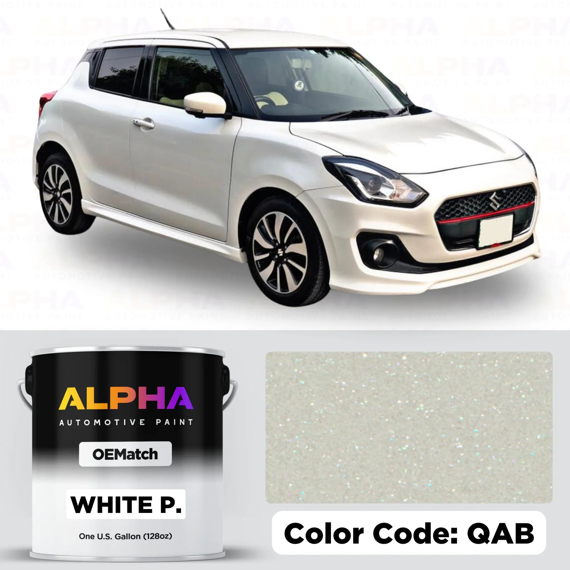 Achieve a refined and luminous look with Suzuki White P. QAB OEM Matching Automotive Paint. This brilliant pearl white, featured on models like the Suzuki Swift and Vitara, delivers a precise factory color match with a shimmering, high-gloss finish. Perfect for touch-ups, restorations, or custom refinishing, this color provides a sleek and sophisticated appearance that stands out.
