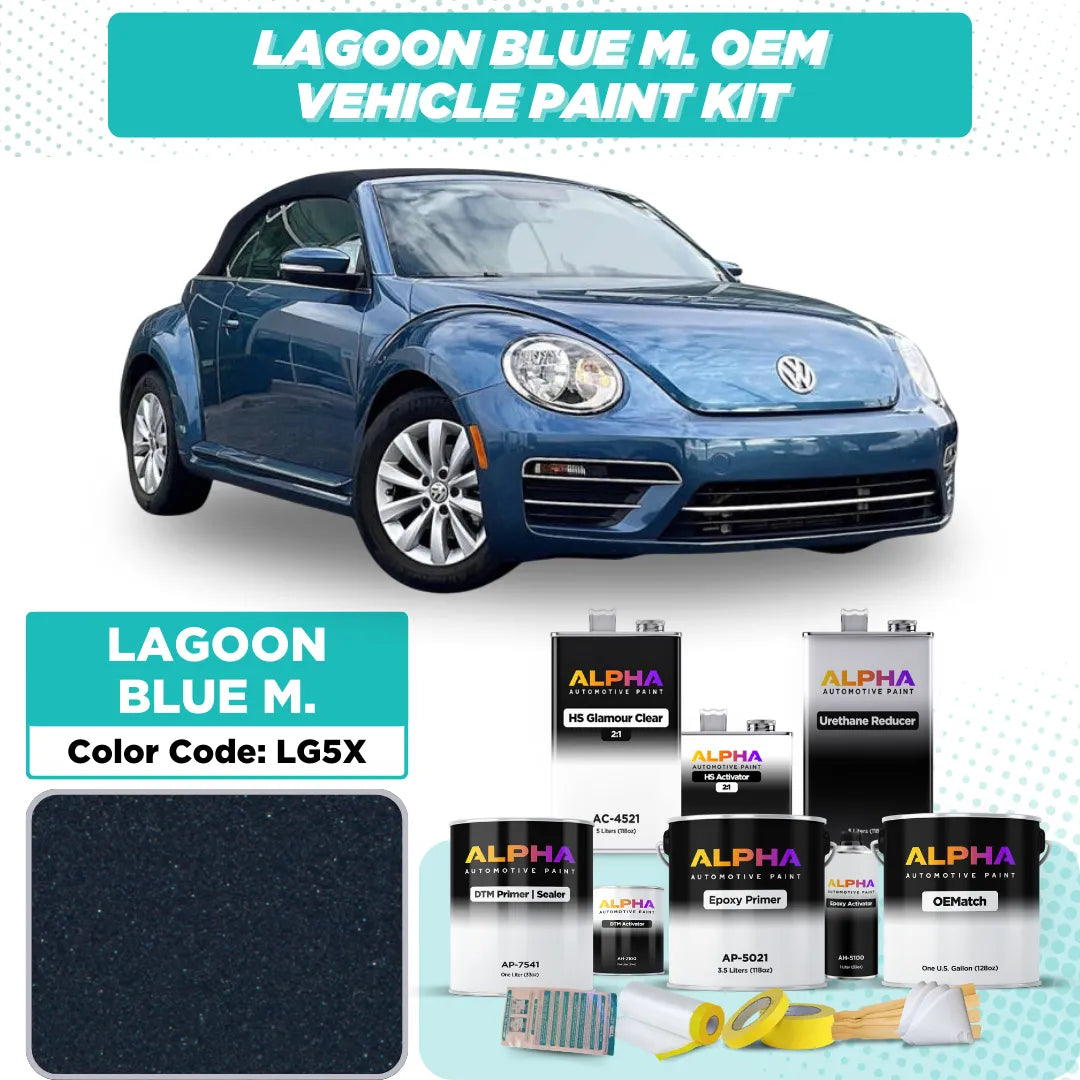 Enhance your Volkswagen with Volkswagen Lagoon Blue Metallic LG5X OEM Matching Automotive Paint. This vibrant metallic blue color, featured on popular models like the Volkswagen Golf and Tiguan, offers a precise factory color match for restoration or custom projects. Whether you're restoring a modern VW or adding a sleek, high-gloss finish to your build, this paint provides a deep, high-gloss metallic finish that accentuates the stylish and dynamic lines of your vehicle.