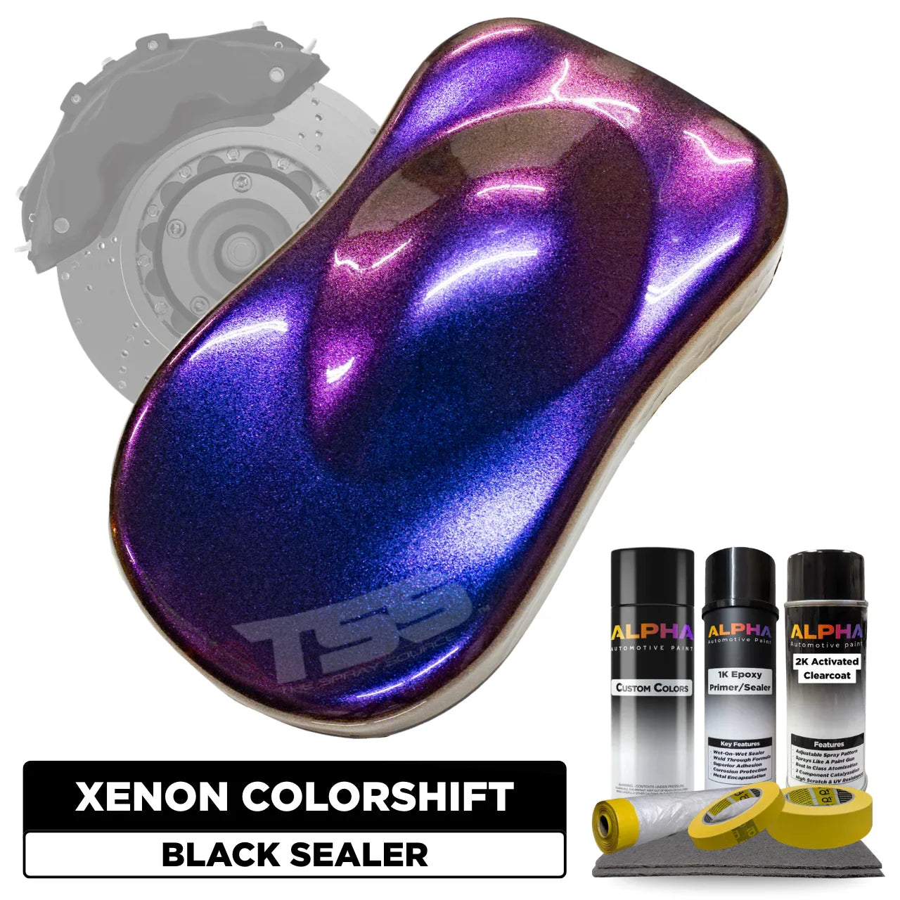 This Brake Caliper Paint Kit includes everything you need to paint your brake calipers Xenon Colorshift. From the primer, basecoat, and topcoats to the optional prep and masking materials – each item has been specially put together for you in one all-inclusive bundle. You simply choose the desired color, project type, finish (Matte, Satin or Gloss), and optional add-ons. Then we handle the rest. Doesn’t get easier than this!